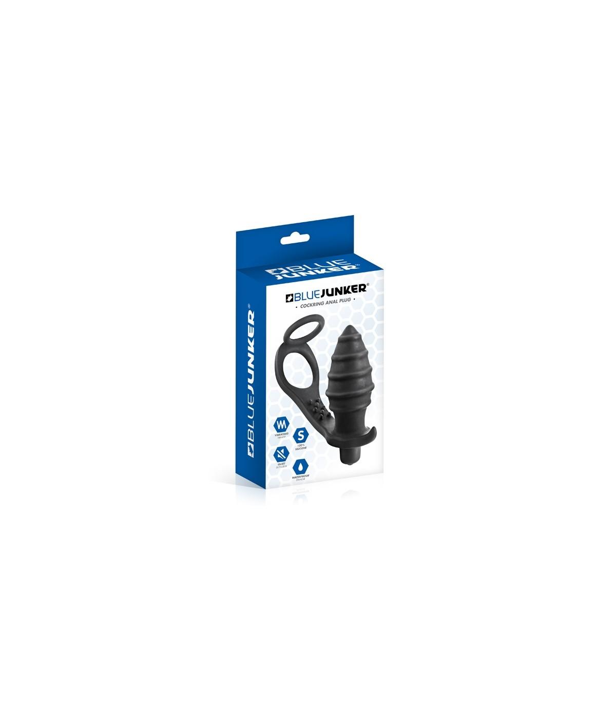 - Anillo con estimulador anal con vibración realizado en silicona suave en color negro.