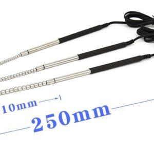 Esta varilla uretral Electro Shock Insert es un accesorio diseñado para estimular el interior del pene y proporcionar sensaciones muy intensas.Mide 17 cm de longitud y puedes elegir el diámetro (4, 5 ó 6 mm).Se suministra con cable (clavija de 2,5 mm).Para utilizarlo, necesita una unidad de control o mando de electroestimulación y, si es necesario, un adaptador Electrastim.En metal