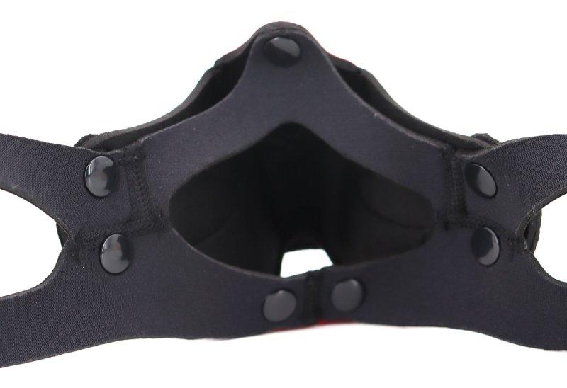 De neopreno.Morro de 13 x 8 cm totalmente desmontable con botón de presión.Tirantes ajustables de 53 a 76 cm y de 39 a 52 cm.Lengüeta desmontable.