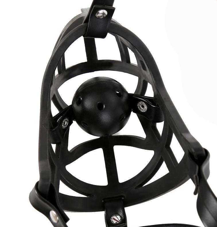 La Correa de bozal consiste en:una mordaza de bola perforada en el interioruna forma con paredes caladascorreas fácilmente ajustables alrededor de la cabeza (de imitación)Dimensiones: 19 cm de largo y 13 cm de alto. Está hecho de silicona