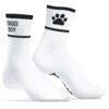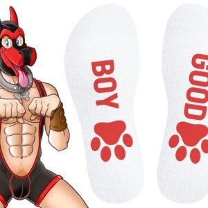 Estos calcetines Good Boy de Kinky Puppy presentan :la parte inferior de los pies con patitas y las palabras «Good Boy», ylos laterales con las mismas patas y palabras.Talla única 39-45.Composición: 85% algodón, 10% poliamida y 5% elastán.Fabricado en Europa