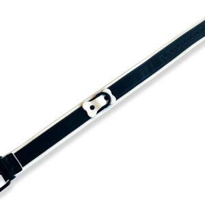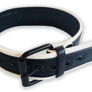 Collar negro con ribete blanco en contraste y hueso central.Con anilla metálica para enganchar la correa.Anchura 3,7 cm.Cuello de 38 a 49 cm.De imitación (poliuretano).