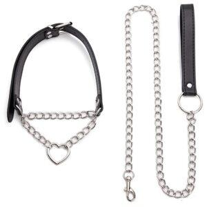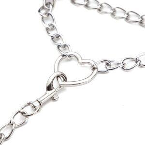 Este accesorio Heart Chain consta de un collar con cadena de metal y forma de corazón en la parte delantera, una correa ajustable con un tamaño de cuello de 30 a 59 cm y una correa de metal de 80 cm.Fabricado en poliuretano