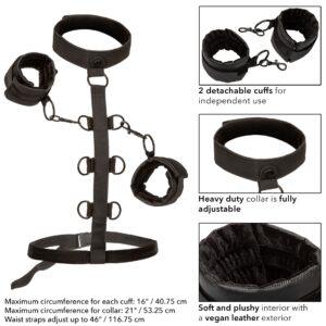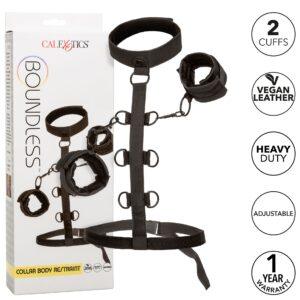 Este accesorio de la gama Boundless consta de :puños con una circunferencia máxima de 41 cmun cuello con una circunferencia máxima de 53 cmcinturón ajustable con clip.Cierre de velcro.6 anillas en el centro.Fabricado en 93% poliéster y 7% elastán