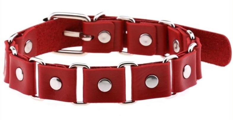 La gargantilla Stitch roja está hecha de varios eslabones cuadrados con remaches metálicos. 2cm de ancho.Longitud del cuello de 34 a 42cm.En imitación