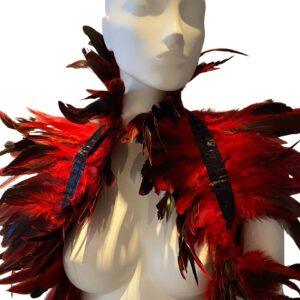 Este cubrehombros te transformará en un ángel o en otra criatura digna de tus fantasías. Fabricado con plumas, se abrocha con tiras de tejido satinado.Longitud de las plumas 80 cm. Longitud total 120 cm.Altura de las plumas 32 cm.Color rojo
