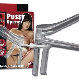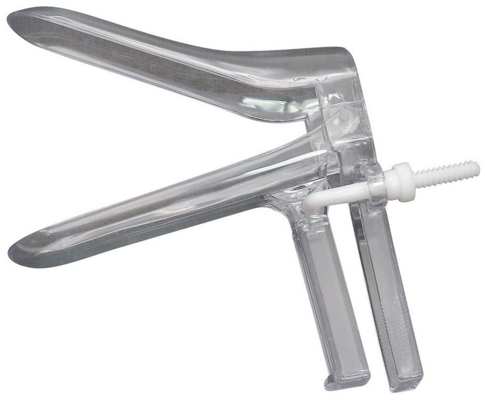 Este espéculo transparente está hecho de plástico. Tiene ramas de 10 cm de largo que se insertan en la vagina y se abren gradualmente.Entonces el ancho es de 12 cm como máximo. Ideal para los juegos de dilatación vaginal SM