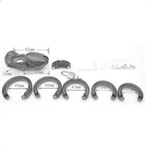 Esta jaula de castidad roja mide 8 cm de largo y tiene un diámetro interior de 3,3 cm.La forma es estrecha para apretar el pene y evitar la erección.Ideal para momentos de sumisión.Se suministra con anillas de 35, 38, 43, 46 y 49 mm de diámetro.Fabricado en policarbonato