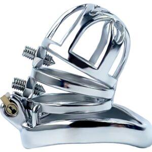 La jaula de castidad metálica DOBLE PIK restringe las erecciones y proporciona sensaciones excitantes y extremas.Mide 6,5 cm de largo y 3,5 cm de ancho en el interior.Dispone de 2 pinchos ajustables en la parte superior.Con anillo de retención (diámetro a elegir) y cierre con llave