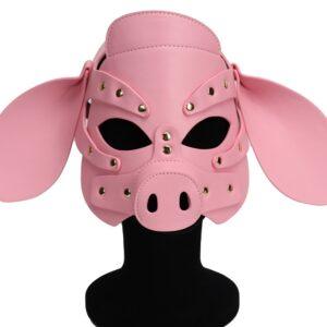 La máscara rosa Pig Grox tiene forma de cabeza de cerdo.Tiene hocico y orejas caídas.Con piezas de metal dorado y una altura de 19 cm.Con una correa ajustable y un tamaño de cabeza que va de 60 a 70cm.De imitación (poliuretano)