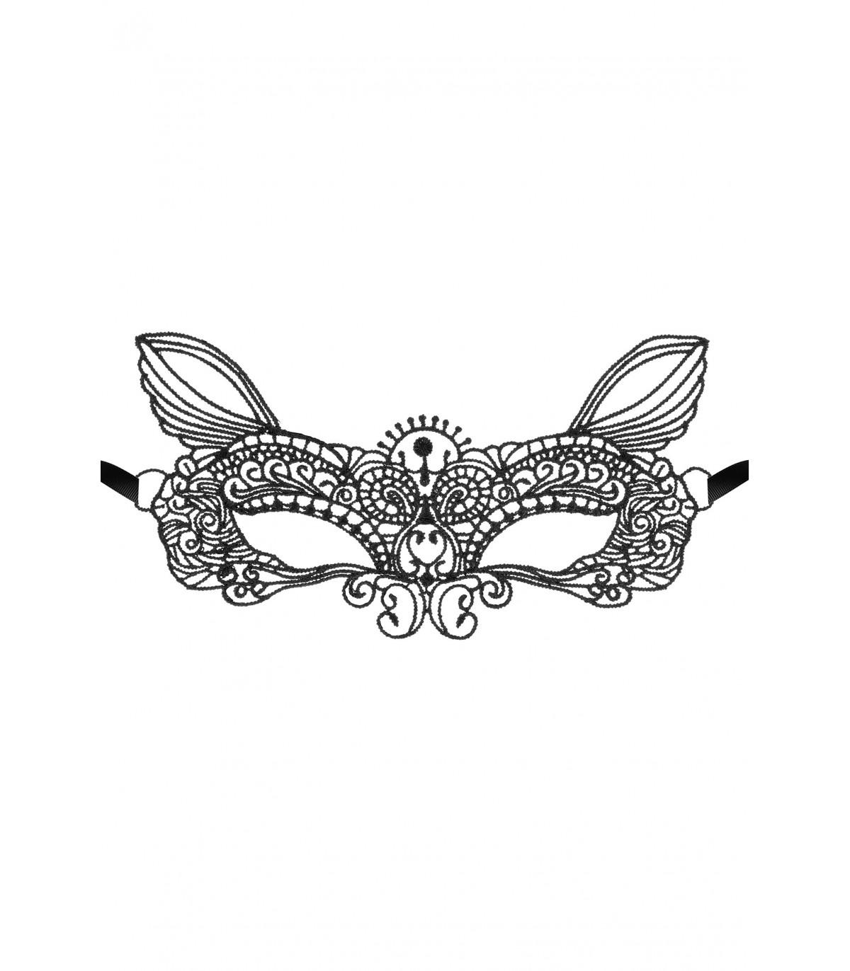 Máscara flexible realizada en guipur con dos tiras de raso en los laterales para un mayor ajuste a cualquier medida.