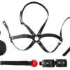 Este kit de introducción al BDSM te permite descubrir las delicias del mundo SM. Este paquete incluye: Muñequerasuna mordaza de bolauna máscaraun arnésIníciate en los juegos más calientes. Accesorios de piel sintética.
