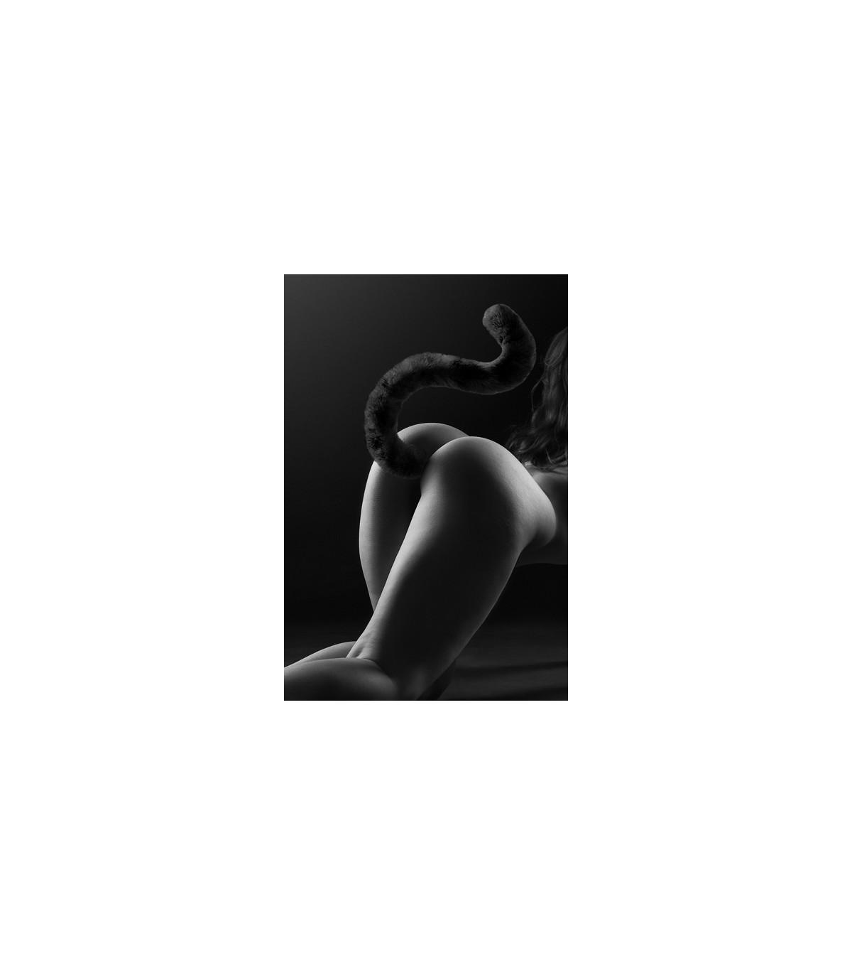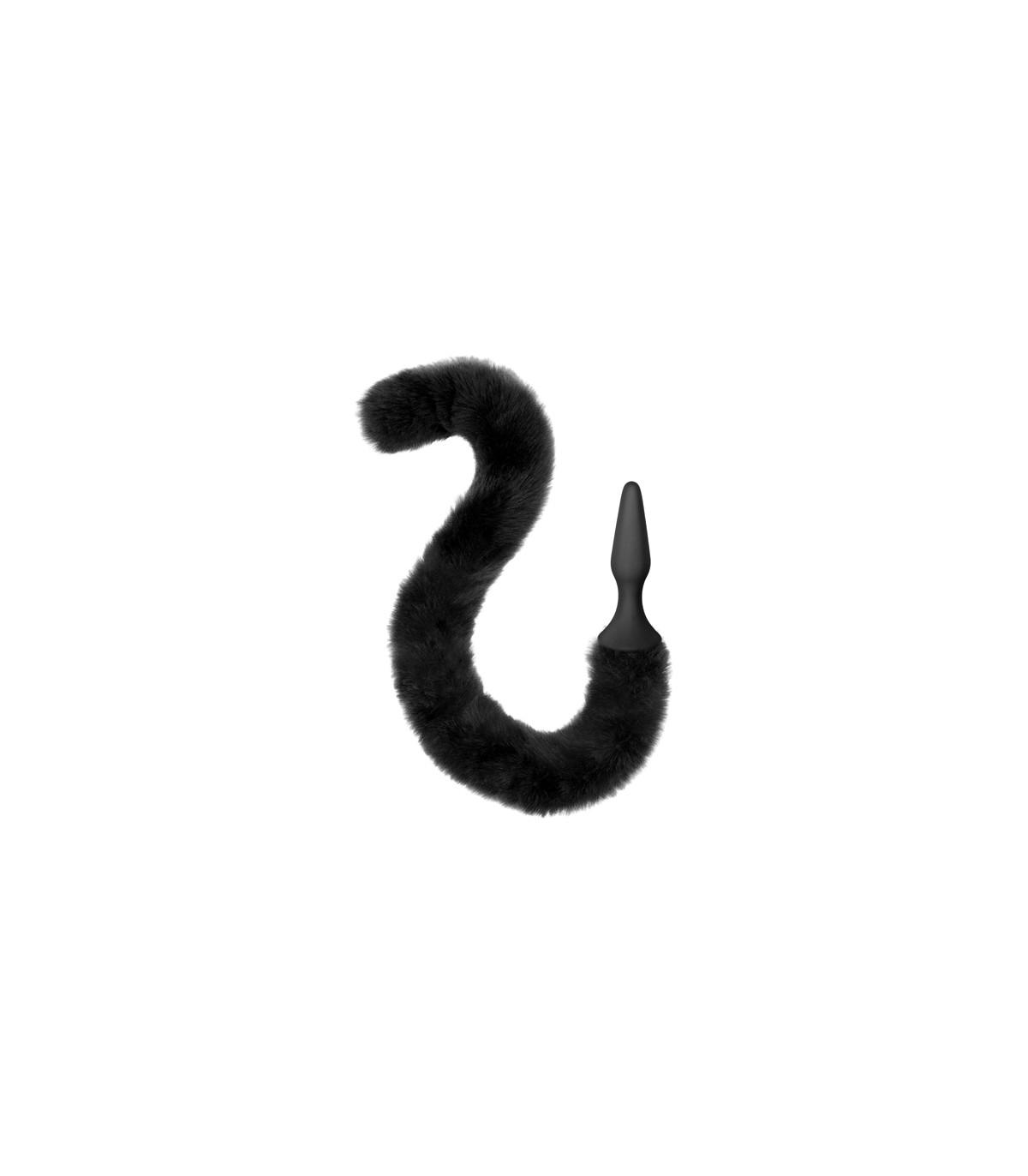 Plug anal realizado en silicona suave y sedosa terminado en cola articulada suave de gato en color negro.