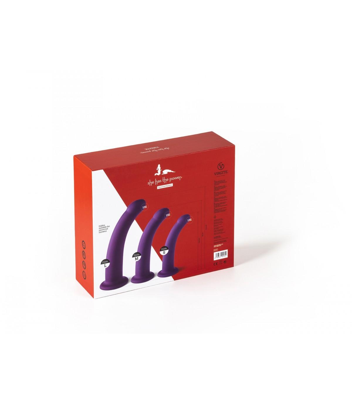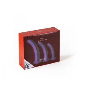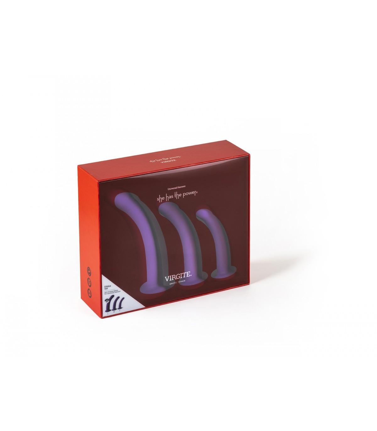Set 3 de dildos realizados en silicona de diferentes tamaños. Gracias su forma curvada, proporciona un placer extra en el Punto G o punto P.